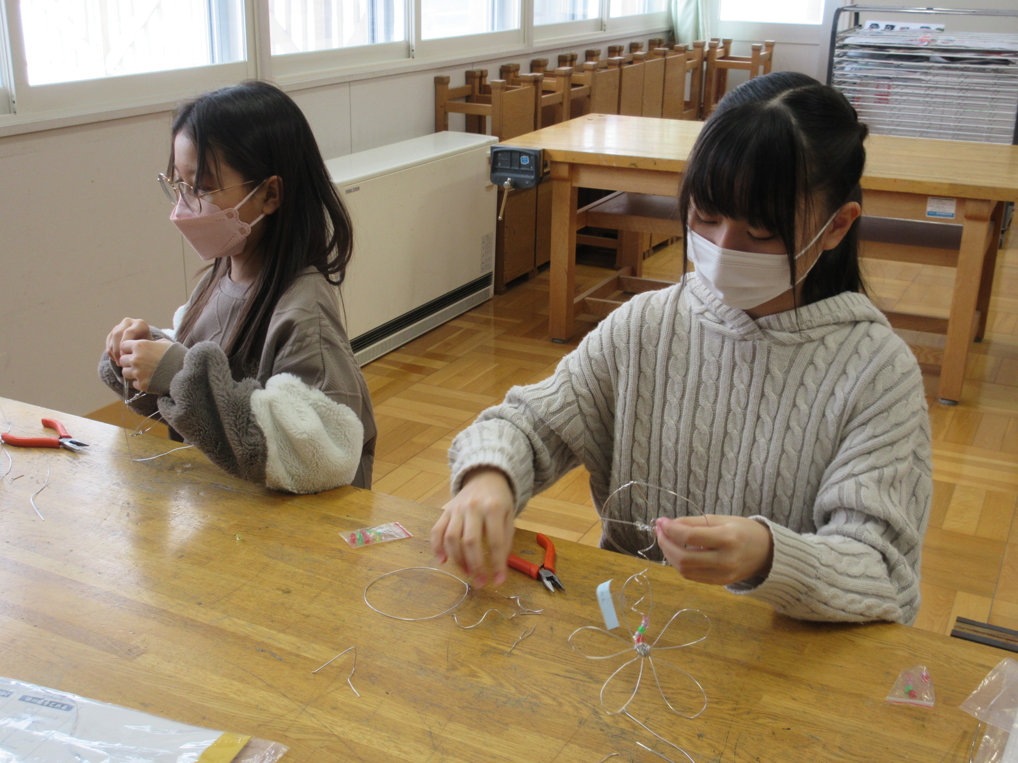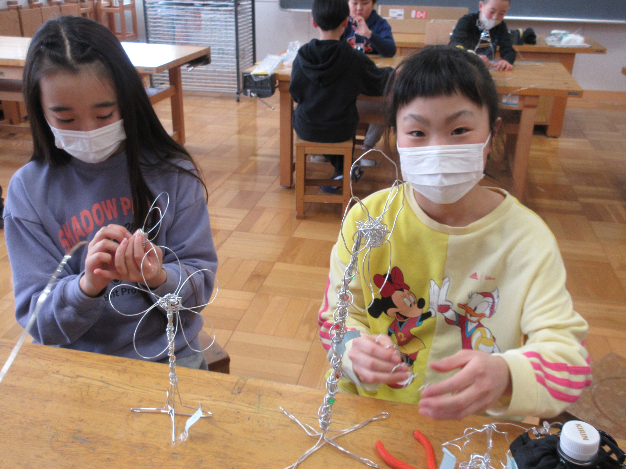 5年生が図工で「美しく立つはり金」の学習をしていました。