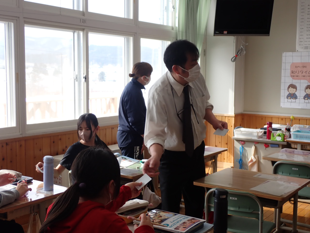 今日は中学校の佐藤先生が、外国語の授業にやってきてくれました!4月からはこの先生が外国語の先生です。