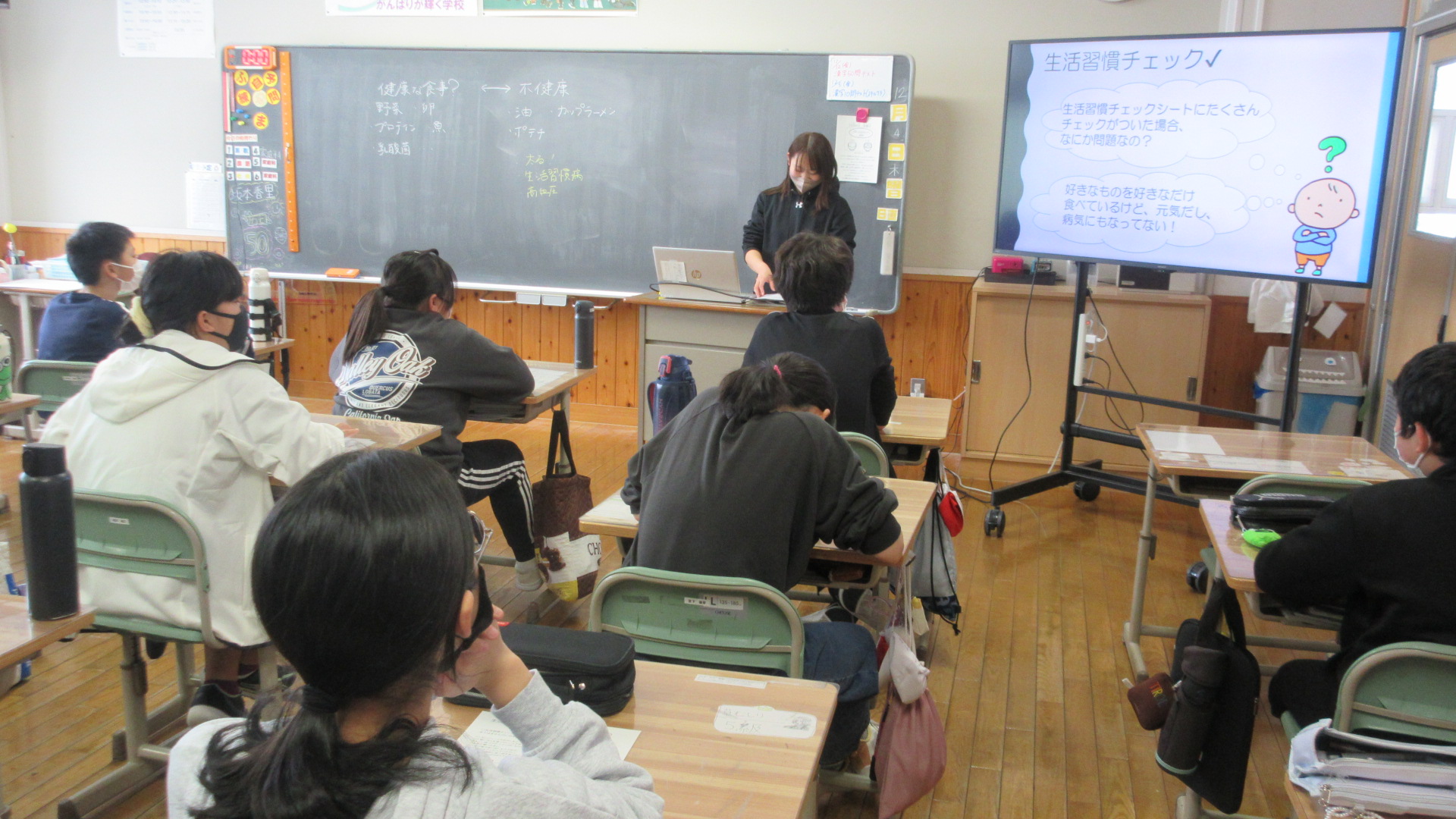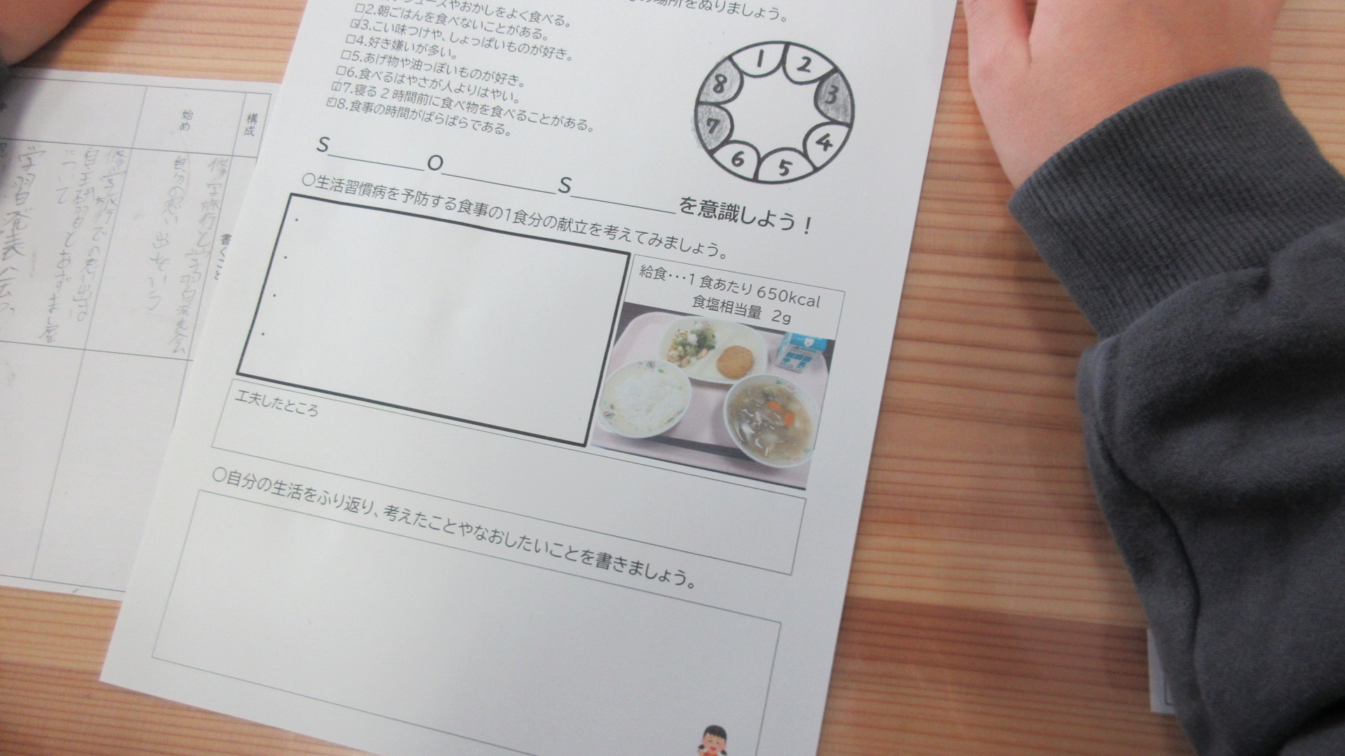 栄養教諭の南部先生による食育の学習を6年生で行いました。健康な食事とは、どんなメニューなのか考える学習です。