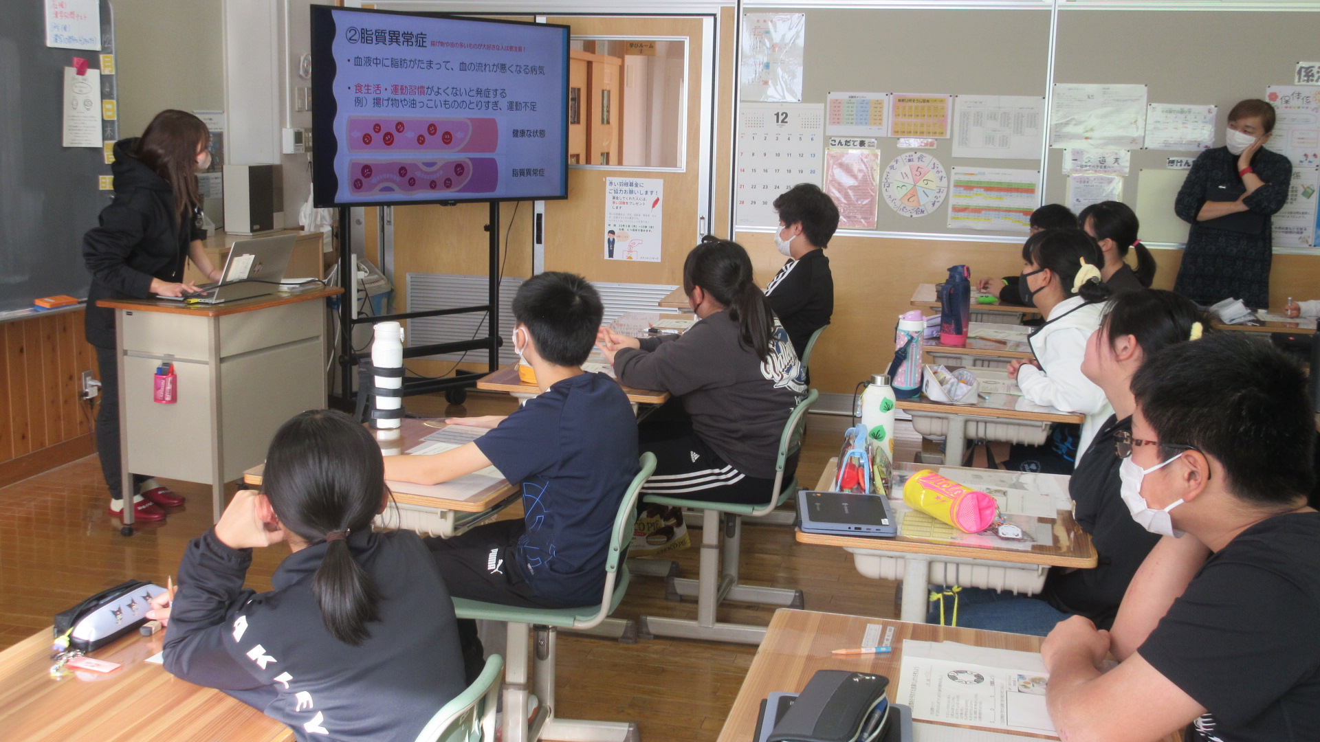 「不健康な食事を続けるとどうなるか?」に対して、子どもたちは「太る!」「生活習慣病になる!」「高血圧や糖尿病」など発表していました。