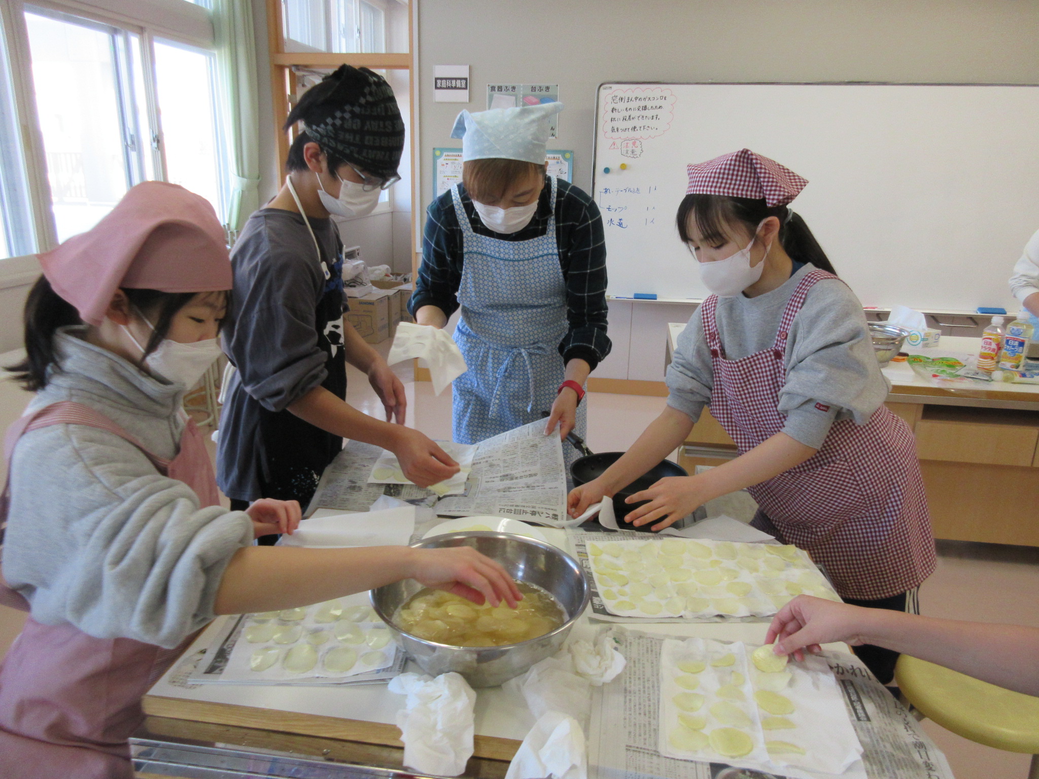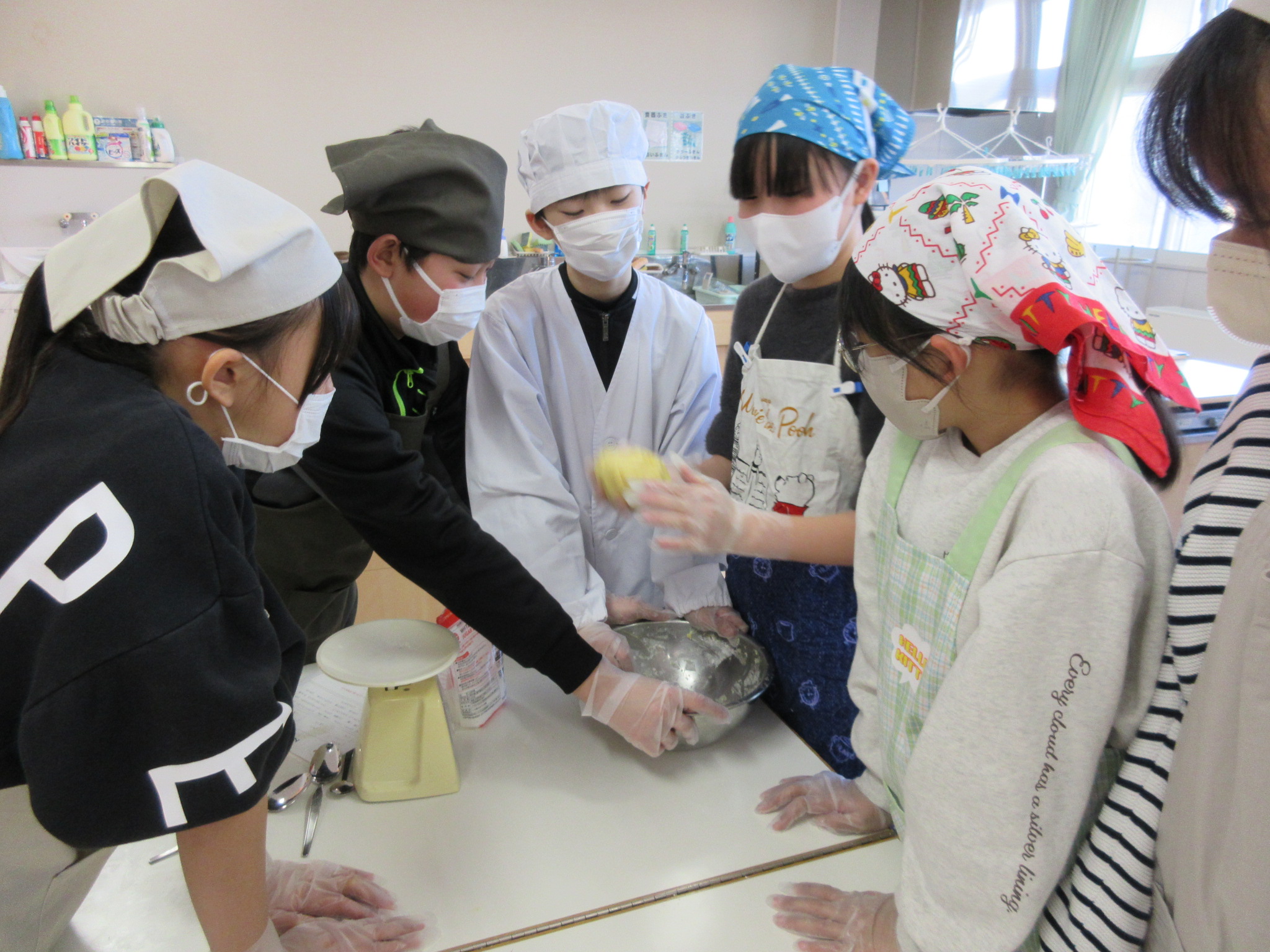 6年生が、小学校最後の授業参観で、今までお世話になった家族に向けたお礼として「クッキー」と「ポテトチップ」づくりをしました。