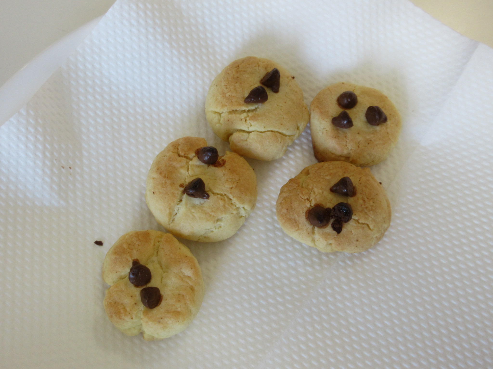 クッキーづくりでは、小麦粉やバターなどの材料を混ぜ合わせた生地に、チョコチップやチョコスプレーをトッピングしました。