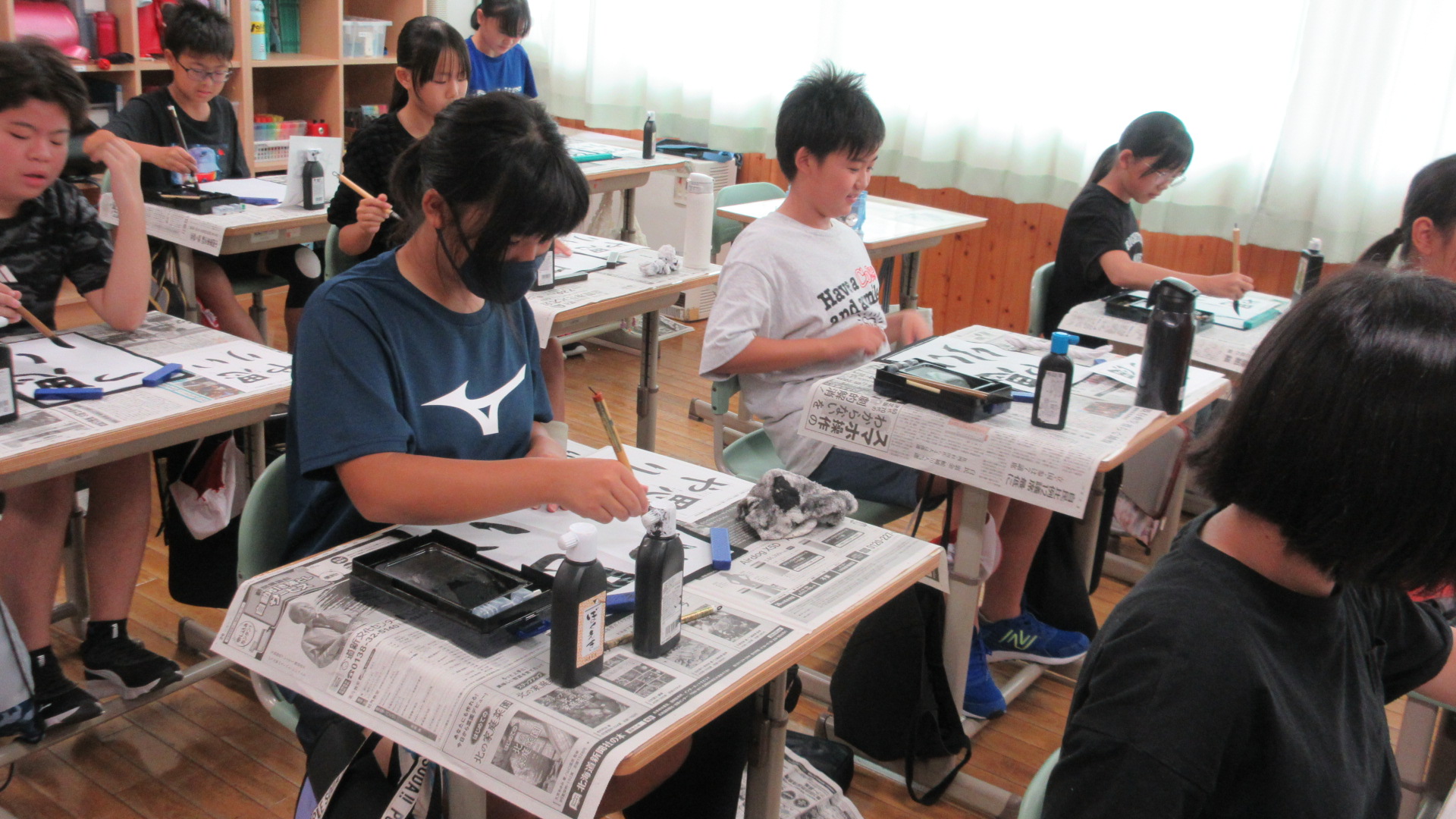 6年生が書写の時間です。今回は毛筆で「思いやり」を書いていました。
