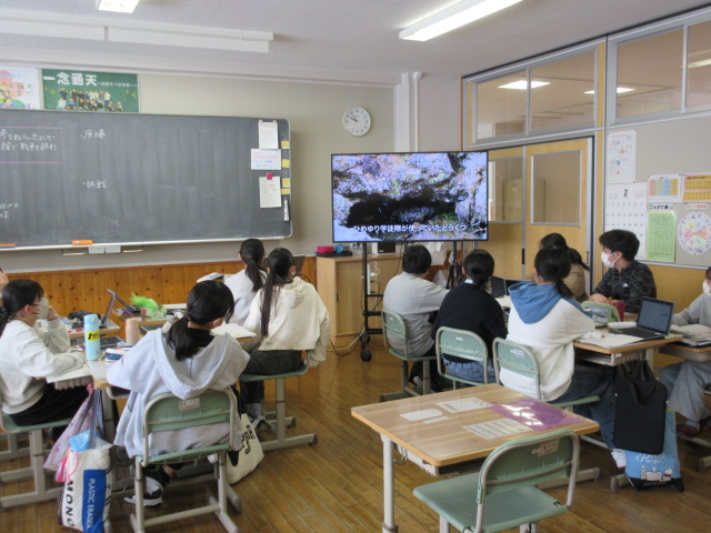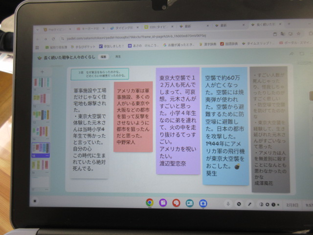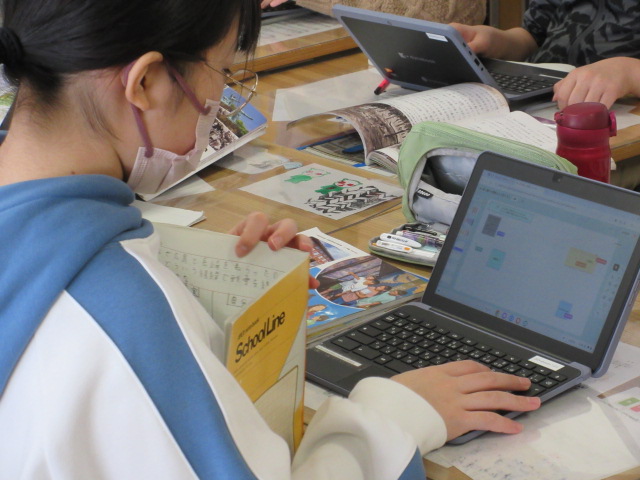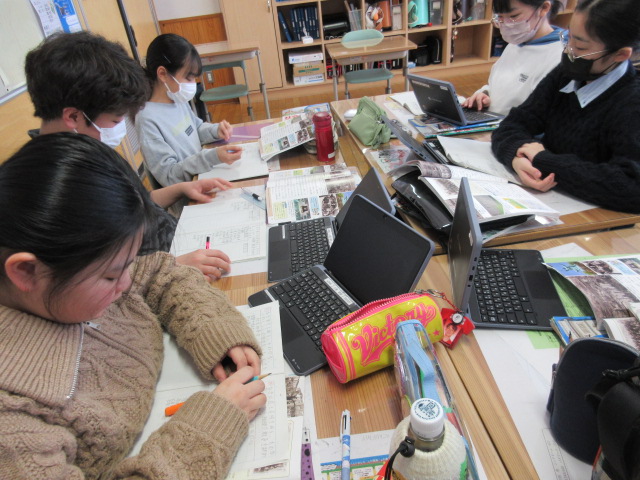 6年生の歴史の学習は現在第二次世界大戦について学んでいます。6年生の教室を除くとグループになって学習を進めていました。
