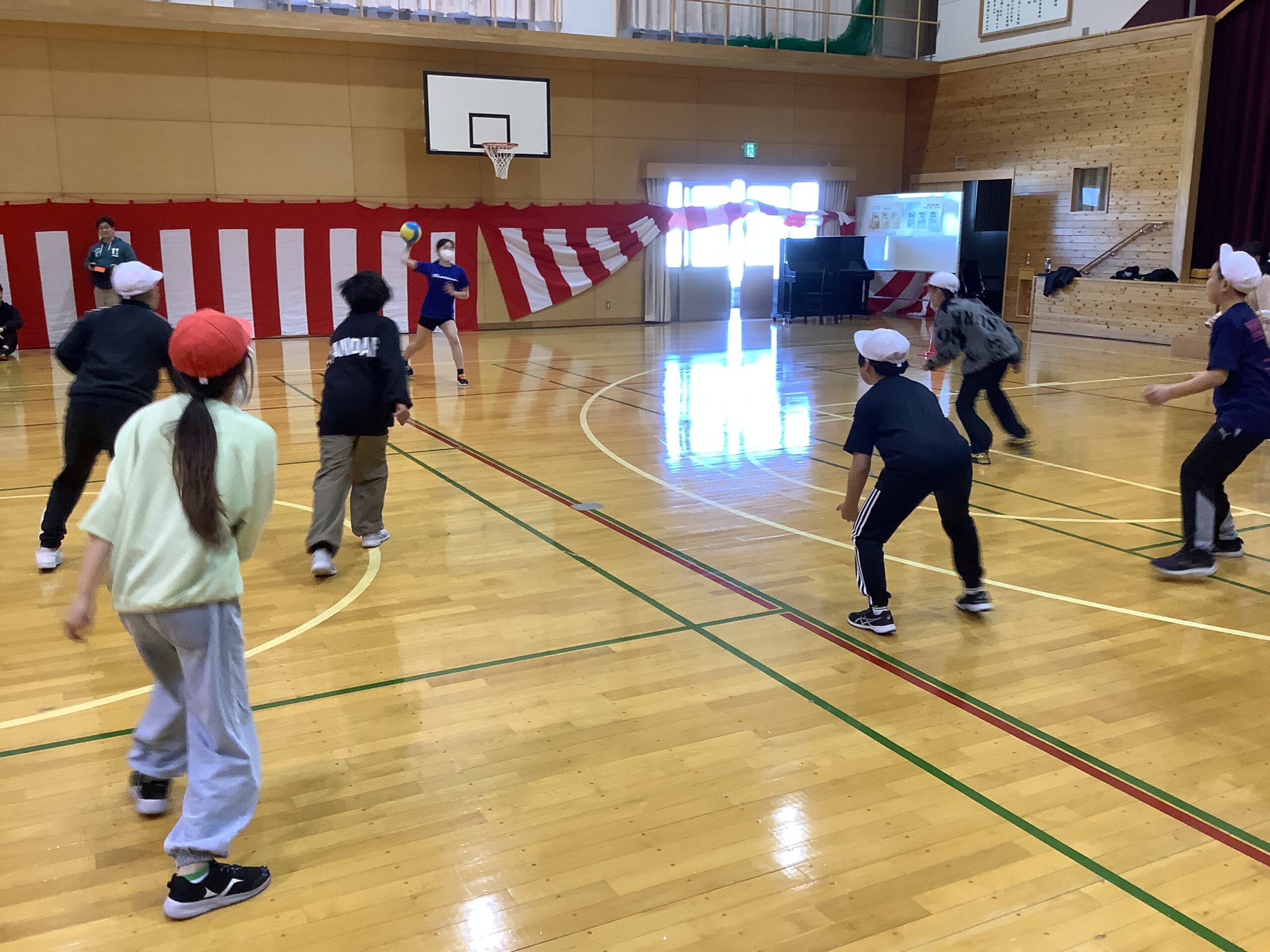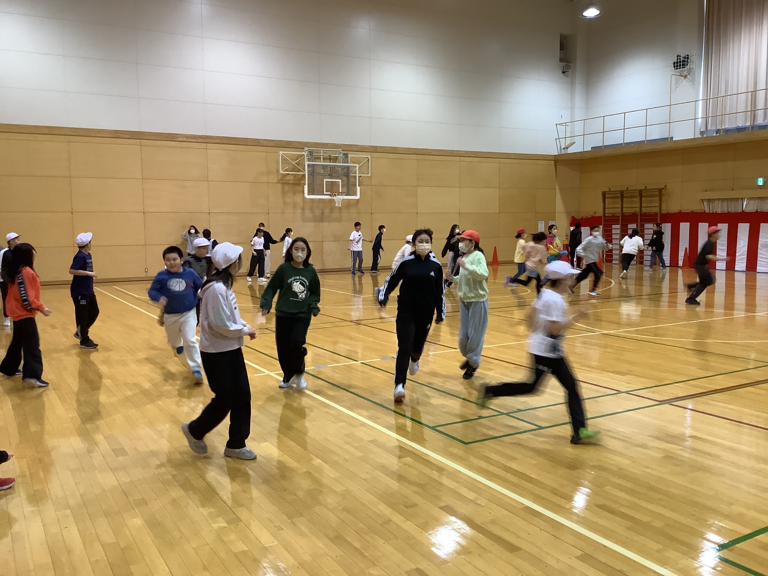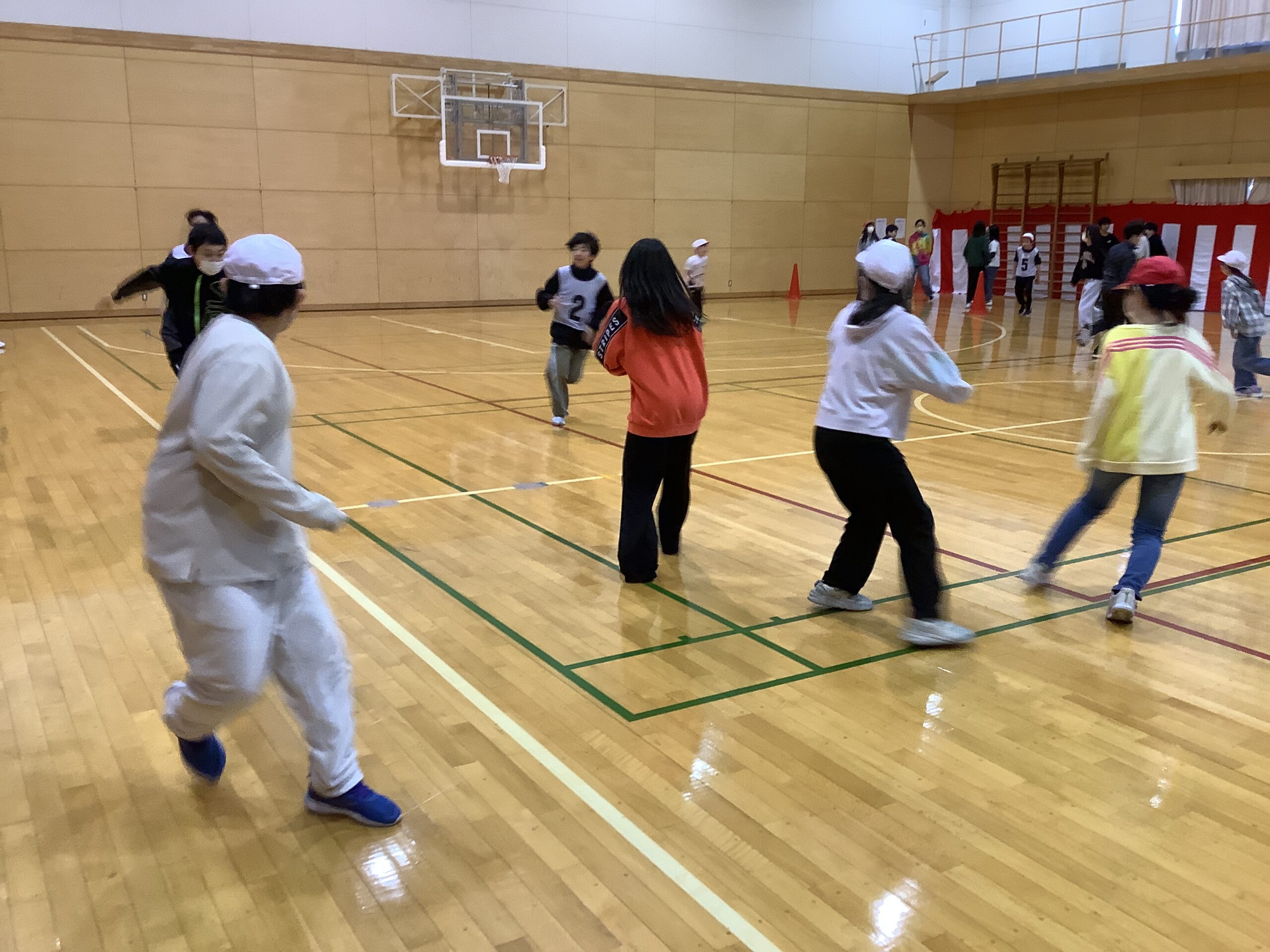 身体も大きな5・6年生ですので、鬼ごっこをしていると、とても体育館が狭く感じました。