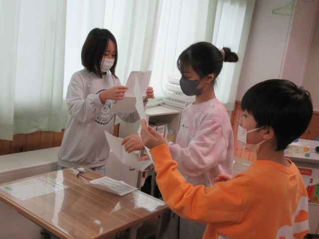 さっそく、アンケート用紙を開き中身を確認しました。「わぁ~横浜から来ている。」「こっちは東京だよ。」とびっくりしていました。