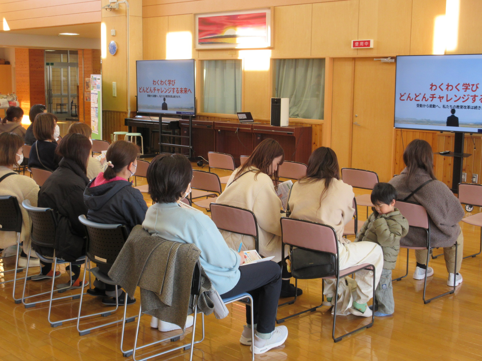 説明会には、約8割の保護者の皆様にご参加いただきました。真剣に説明を聞く保護者の皆様の姿を見て、改めてこの事業を通して、子どもたち一人一人が「幸せに生きることができる力」を育んでいきたいと強く感じました。