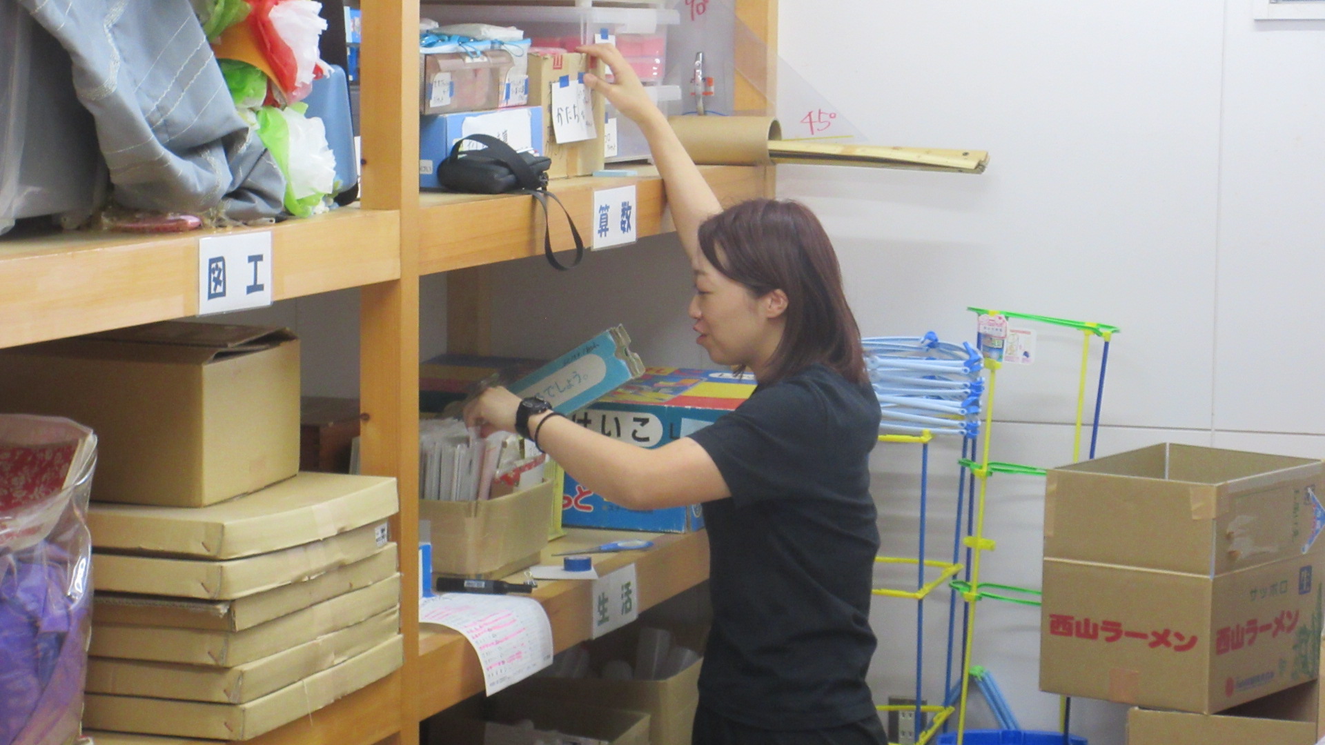 これは、先生方が手が回らなかった備品の整理をしているところです。この整理整頓だけでも、先生方にとっては使いやすく、非常に助かります。