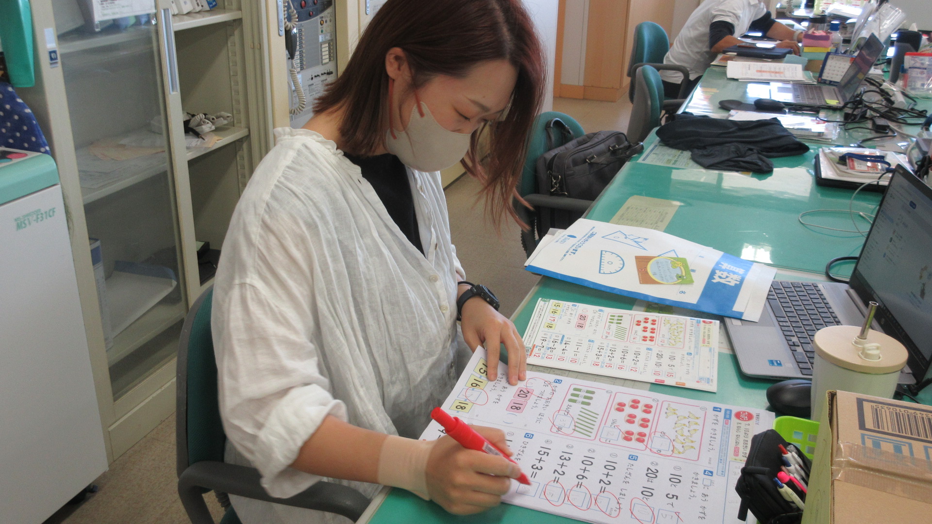 学校には、教師の働き方をサポートするスタッフが来る日があります。教師が授業に専念できるように、〇つけや教材づくり、整理整頓など行ってくれています。