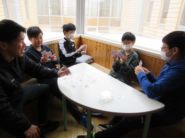 6年生男子は、先生と一緒にトランプでババ抜きかな?していました。