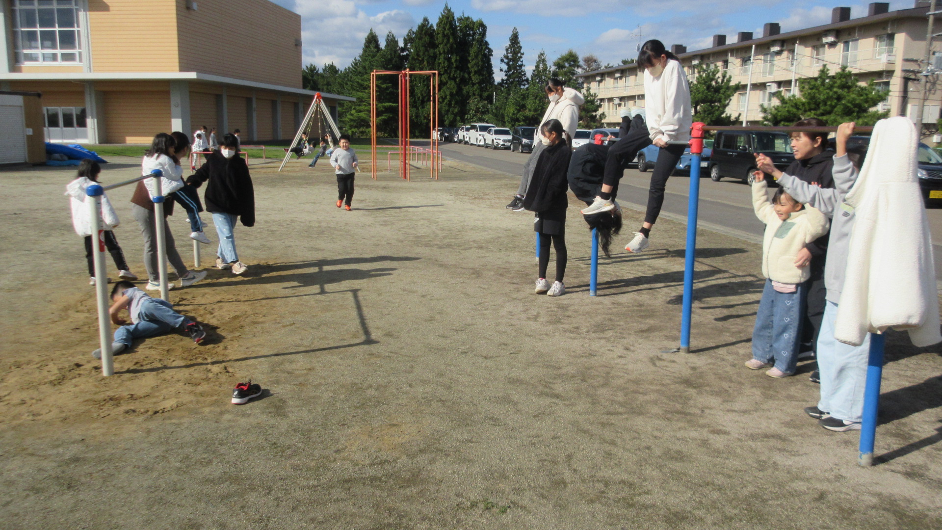 10月も下旬となり、陽射しが差していても肌寒く感じる季節となりました。でも、子どもたちは休み時間になると外に飛び出し元気に遊んでいます。安全管理やクマ対策も兼ねて教職員も見守りして、子どもたちも安心して遊んでいます。