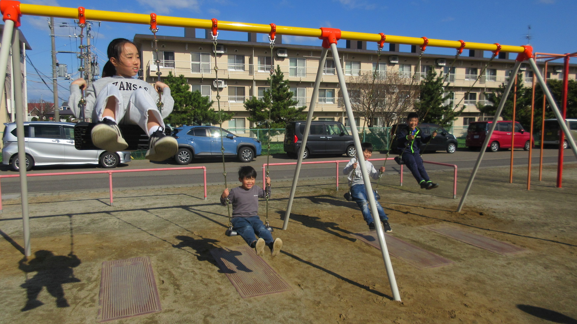 新しく設置された遊具はもちろん、今までの遊具も大切に使っていきます。