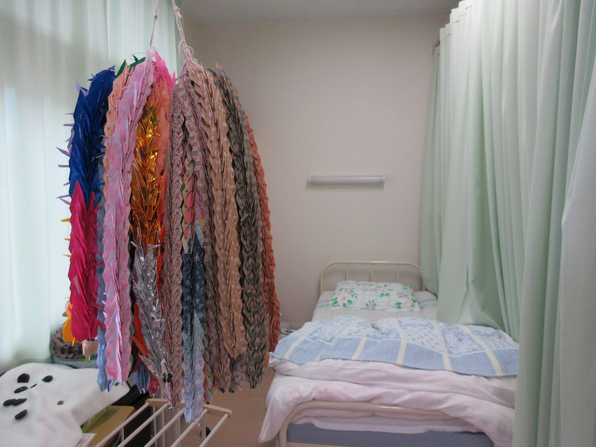 1年生の3人が夏休み明けから少しずつ少しずつ作っていた千羽鶴が完成して、「校長先生!千羽鶴できた!」と店に来ました。3人でほぼ創り上げた千羽鶴は素晴らしいものでした。「これどうするの?」と聞いたら「具合の悪い人が早く良くなってほしいから、保健室に飾ってもらう。」と言って保健室に行きました。