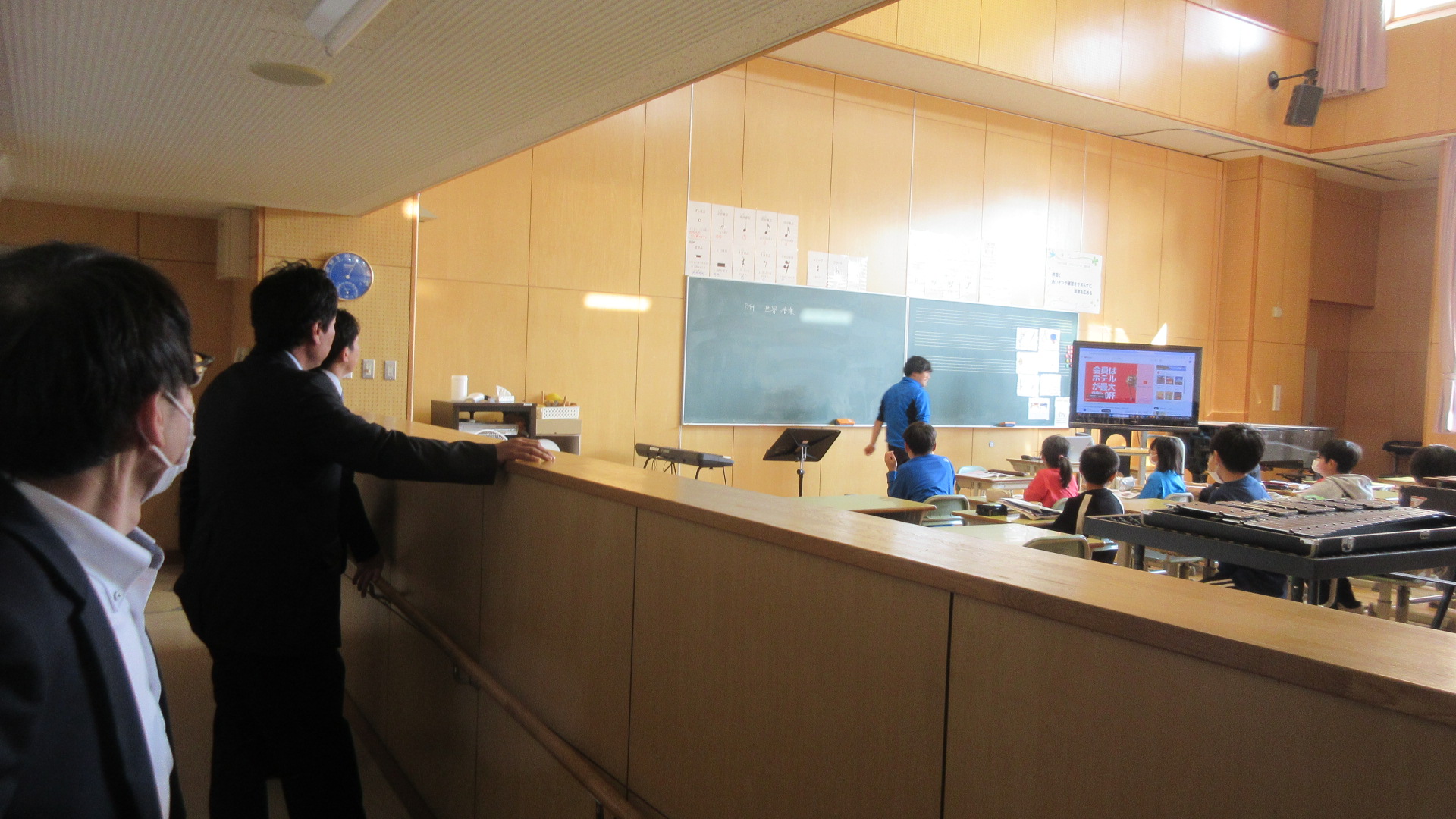 3年生は、4年生の石津先生の音楽の学習をしていました。担任の先生でなくてもみんな一生懸命です。