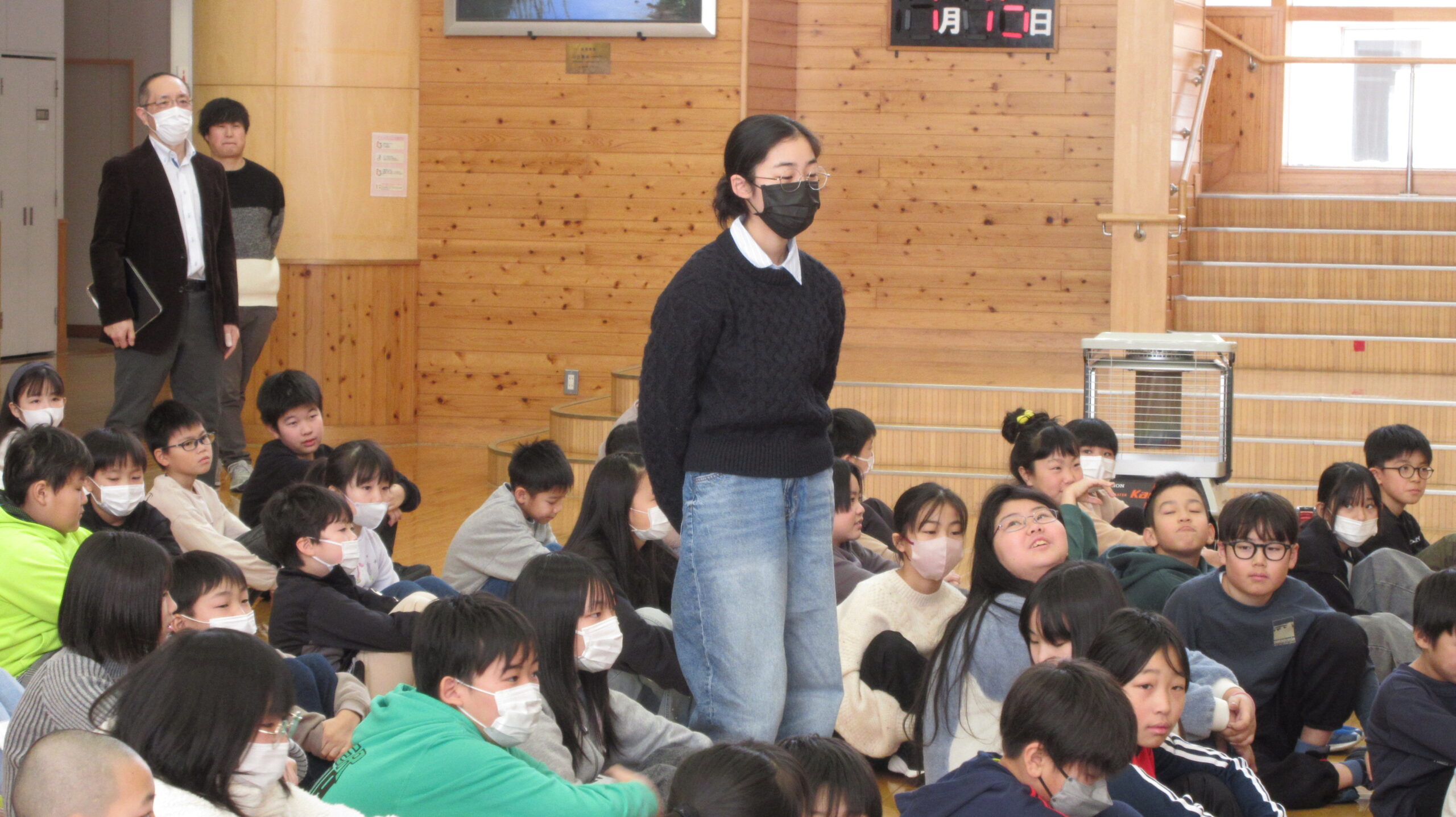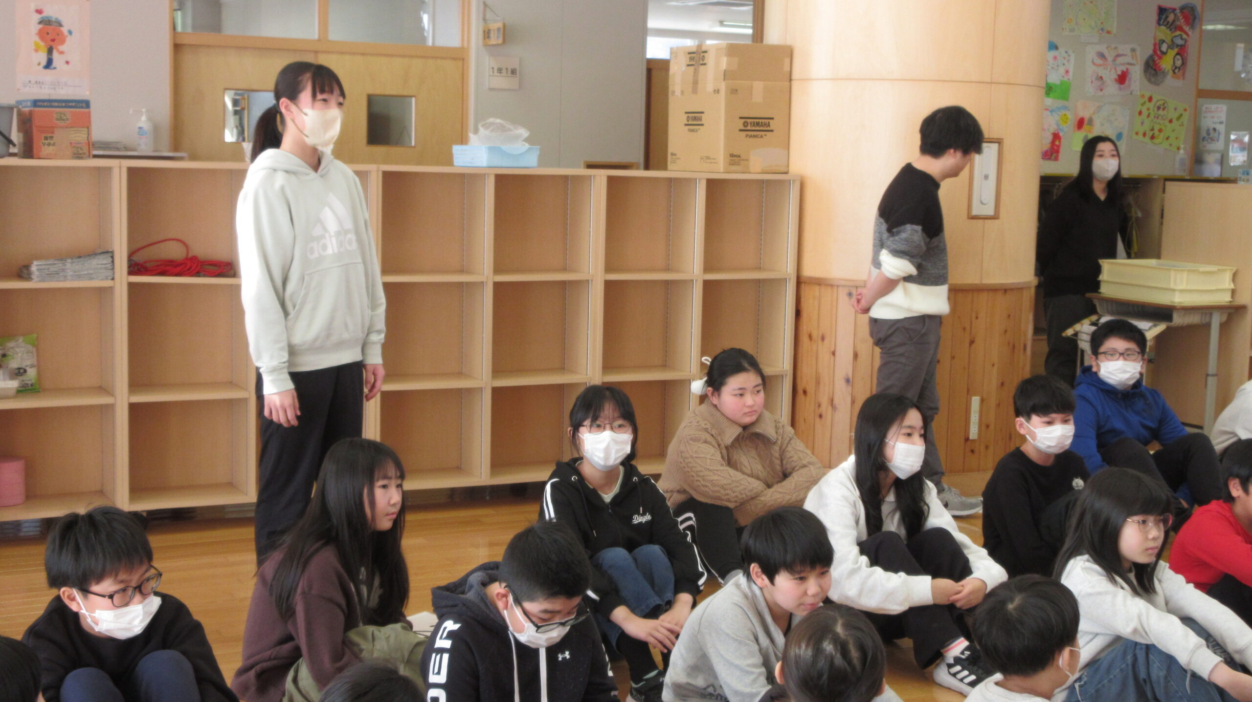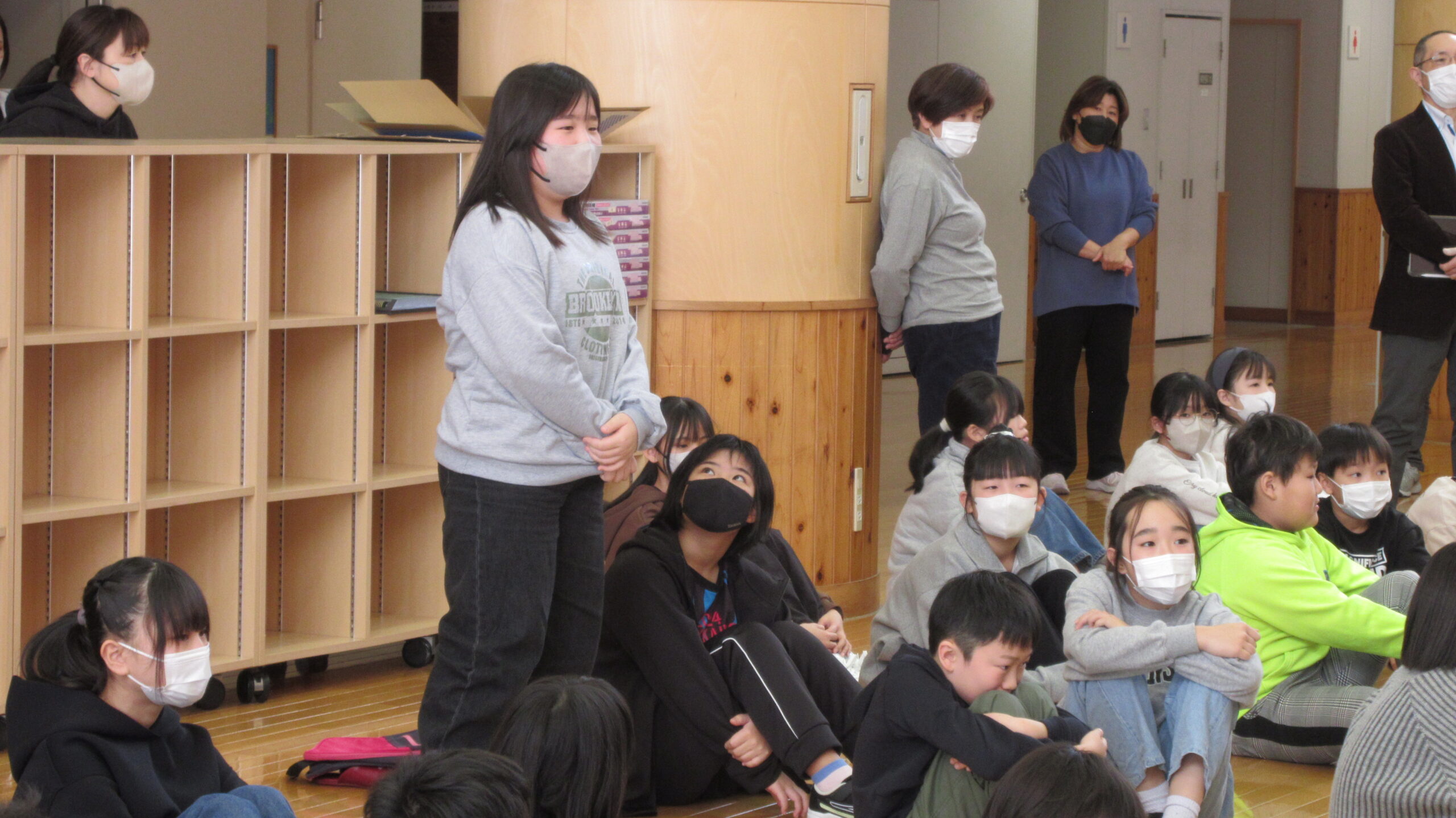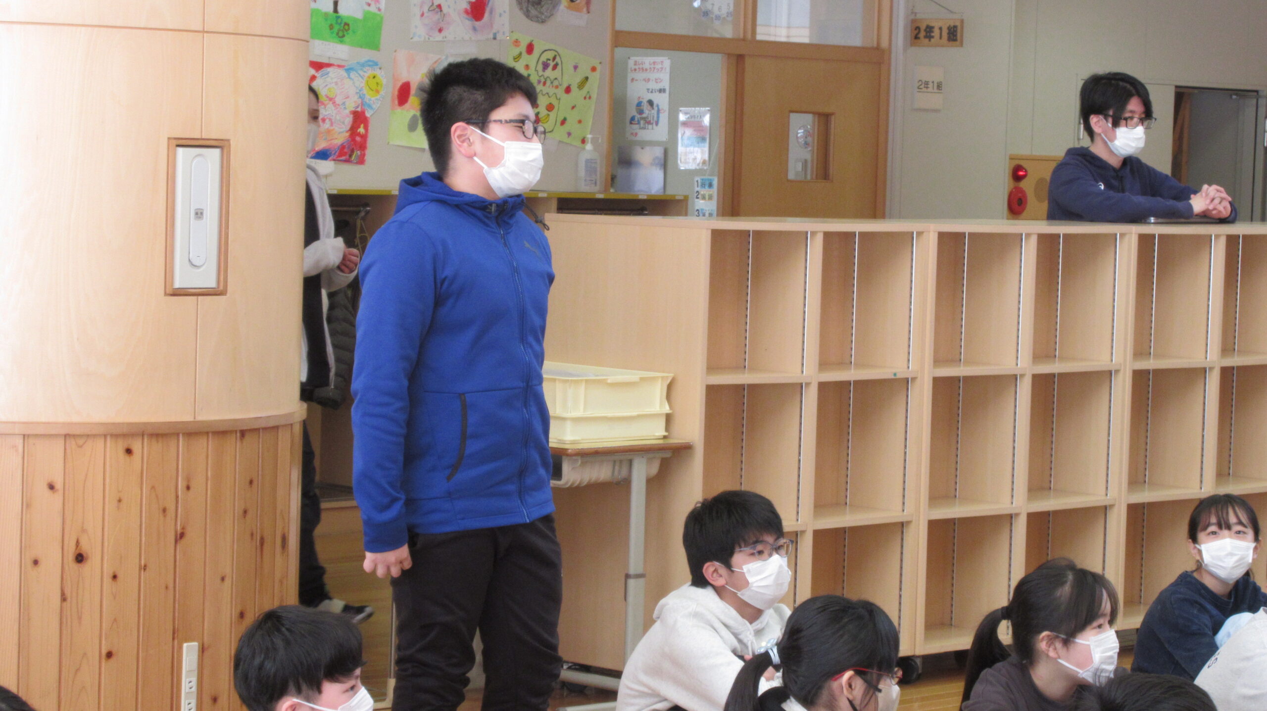 16のグループのうち、2つのグループに交流内容の発表がありました。「お年玉をもらった。」「スキーに行った。」など冬休みの思い出がたくさん語られました。