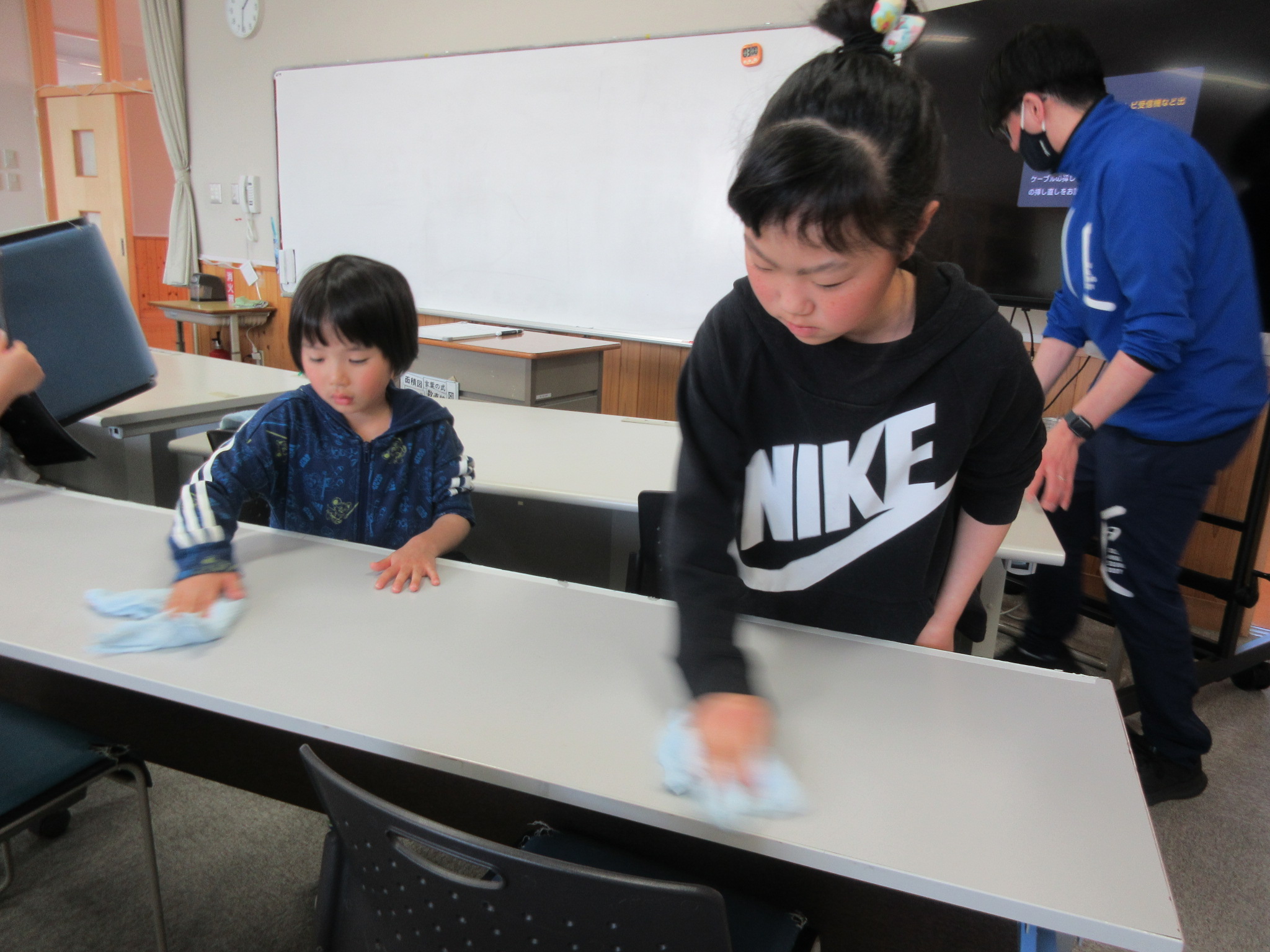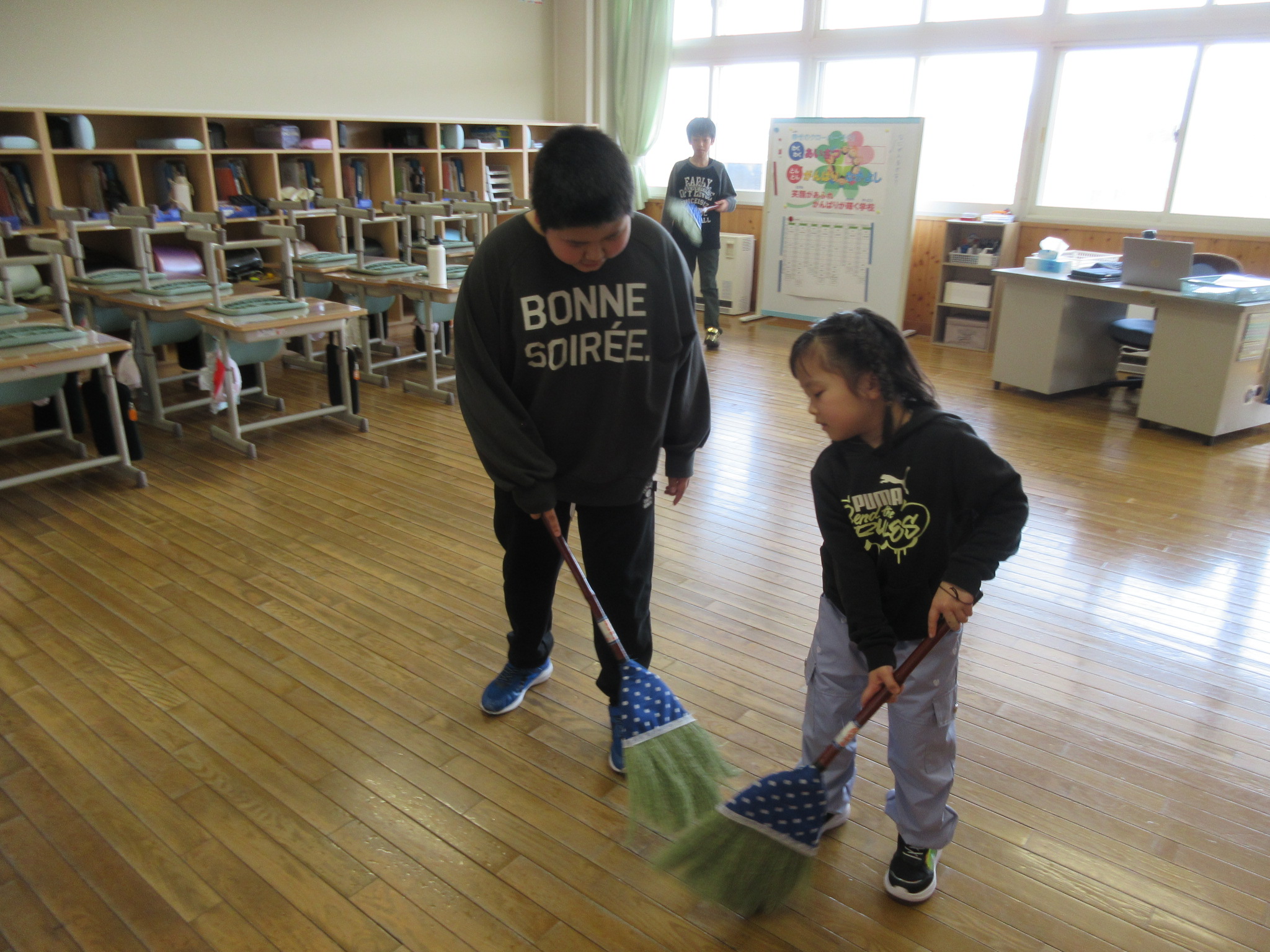はき掃除をしたり、机を整理したり、机を拭いたりとみんな自分の仕事をがんばりました。
